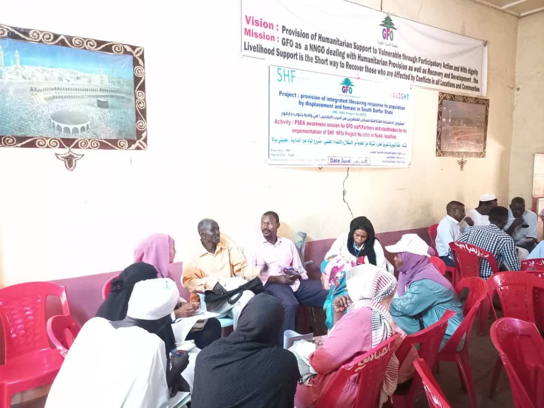 On 02/July 2025, GFO conducted PSEA workshop to raise awareness about the concepts of sexual exploitation and abuse. The workshop was attended by 36 participants, including 18 staff members from the Great Family Organization (GFO) and other 18 stakeholders including the community leader of the newly IDPs camps in Nyala, social workers from ministry of Social Welfares, and local authorities humanitarian coordinators.